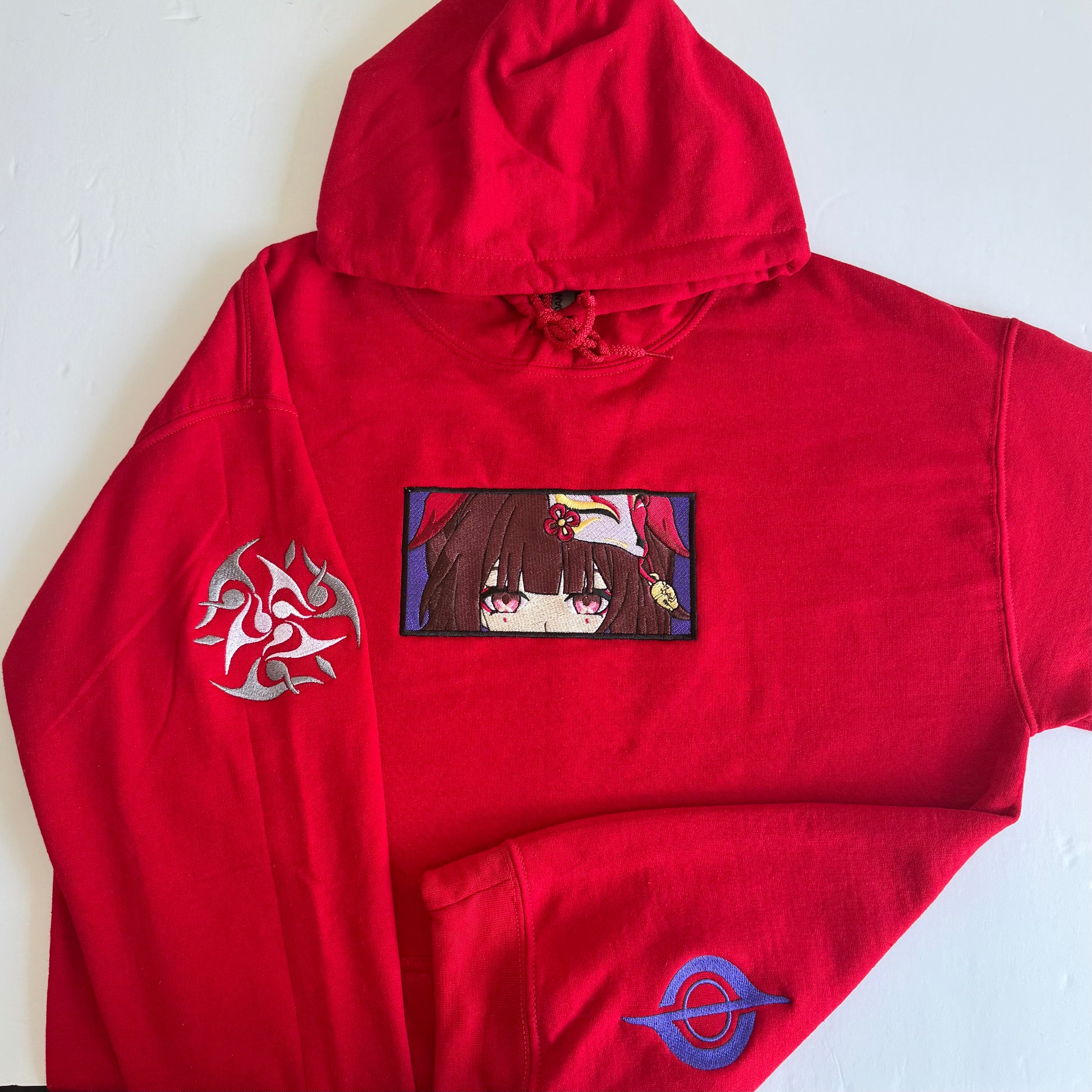 This fan-made Honkai Star Rail embroidered sweatshirts features your favorite character eye design on the middle chest with their path on the right shoulder and their element on the back left.